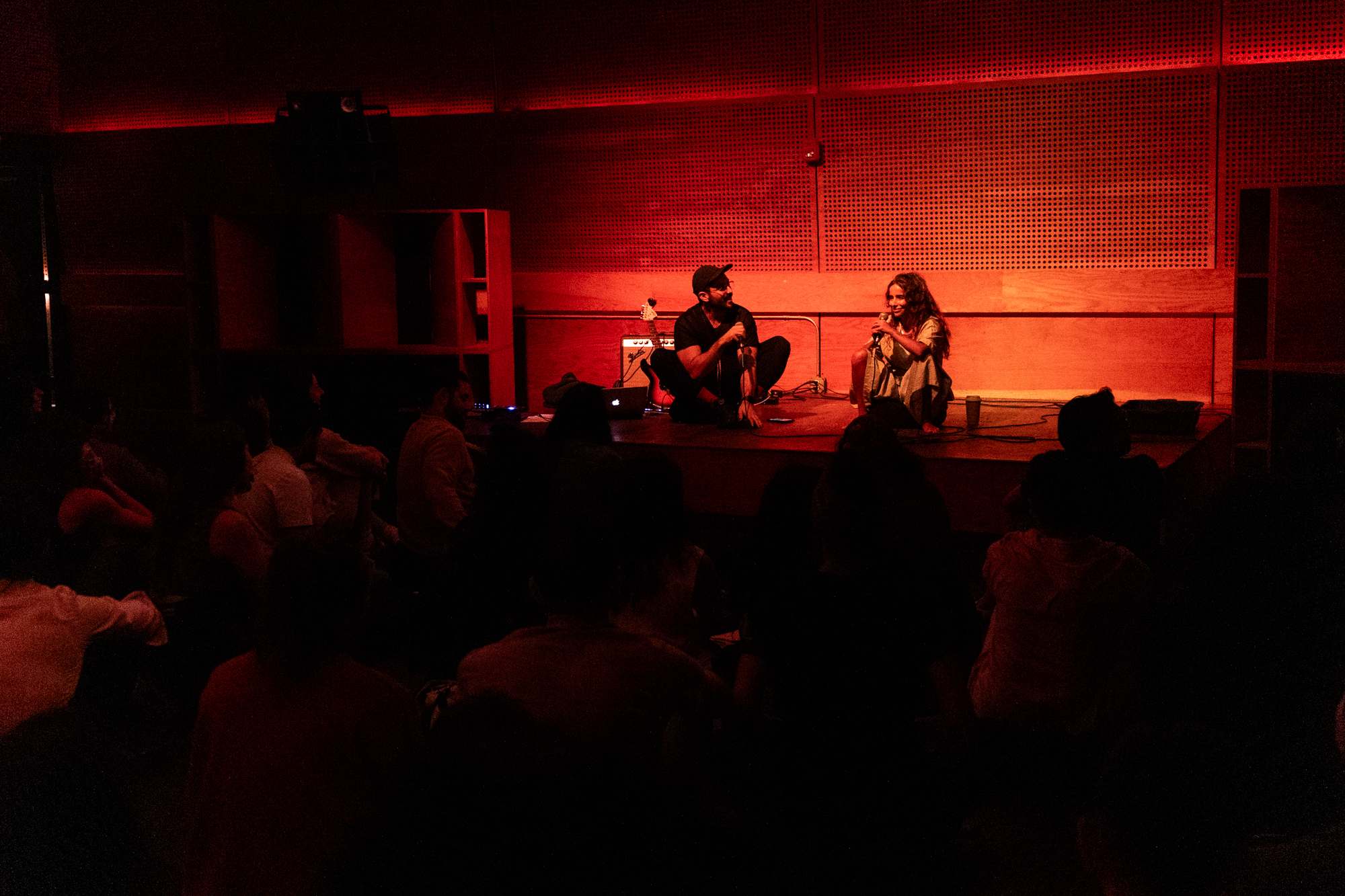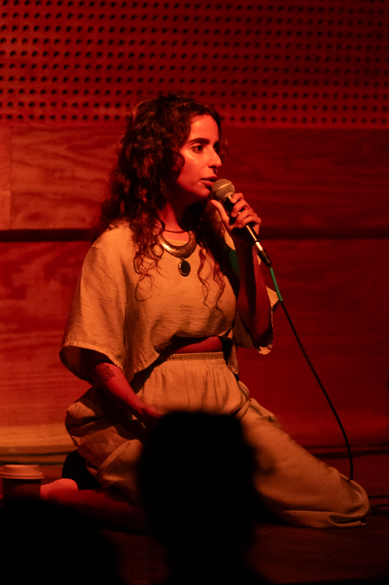 The soft, divine femininity of Rotana’s voice powerfully traveled through our bodies as we sat in silence on cushions across the Sound Room floor at Public Records. Her personal experiences of grappling with her spirituality and desire—and her story of being banned from her home country of Saudi Arabia for it—seemed to welcome an interweaving with each of our own.